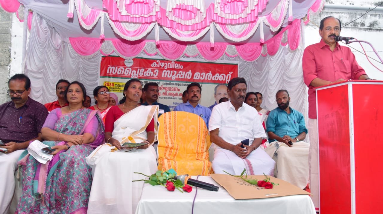 കേരളത്തിലെ കൃഷിക്കാര് ഉത്പാദിപ്പിക്കുന്ന അരി കേരളത്തിലെ ജനങ്ങള്ക്ക് കൊടുക്കാന് സാധിക്കുന്ന നിലപാട് സര്ക്കാര് സ്വീകരിച്ചു. കേരളത്തിന്റെ അന്നം മുടക്കുന്ന നടപടികളാണ് കേന്ദ്രം സ്വീകരിച്ച് കൊണ്ടിരിക്കുന്നത്. എഫ്സിഐയില് നിന്ന് അരി ലേലത്തില് പിടക്കുന്നതിന് പോലും വിലക്ക് ഏര്പ്പെടുത്തിയിരിക്കുകയാണ്. നമുക്ക് ലഭിക്കേണ്ട അരിവിഹിതം കുറച്ച് സമ്മര്ദ്ദത്തിലാക്കുന്ന നിലപാടാണ് കേന്ദ്രം സ്വീകരിച്ച് വരുന്നത്. കേരളത്തിലെ ജനങ്ങളോടുളള സര്ക്കാരിന്റെ പ്രതിബദ്ധത വിസ്മരിക്കില്ല. സാധ്യമായ എല്ലാ നടപടികളും സ്വീകരിച്ച് പൊതുവിതരണ സംവിധാനത്തെ പിടിച്ച് നിര്ത്തുമെന്ന് അദേഹം സൂചിപ്പിച്ചു.വി. ശശി എം.എല്.എ അധ്യക്ഷത വഹിച്ചു. കിഴുവിലം ഗ്രാമപഞ്ചായത്ത് പ്രസിഡന്റ് ആര്. രജിത സ്വാഗതം പറഞ്ഞു. ജില്ലാ പഞ്ചായത്ത് വൈസ് പ്രസിഡന്റ് അഡ്വ. ഷൈലജ ബീഗം ആദ്യ വില്പന നടത്തി ,കവിത സന്തോഷ്, സുലഭ. എസ്,റ്റി. സുനില്,വിനിത .എസ്, സൈജ നാസര്, ആശ, പ്രസന്ന,അനീഷ്. ജി.ജി,എന്. രഘു, പി. പവനചന്ദ്രന്,ആര് .മനോന്മണി,മനോജ് .ബി. ഇടമന,ഡി. റ്റൈറ്റസ്, ജി. വേണുഗോപാലന്നായര്, നിസാം മുടപുരം ,