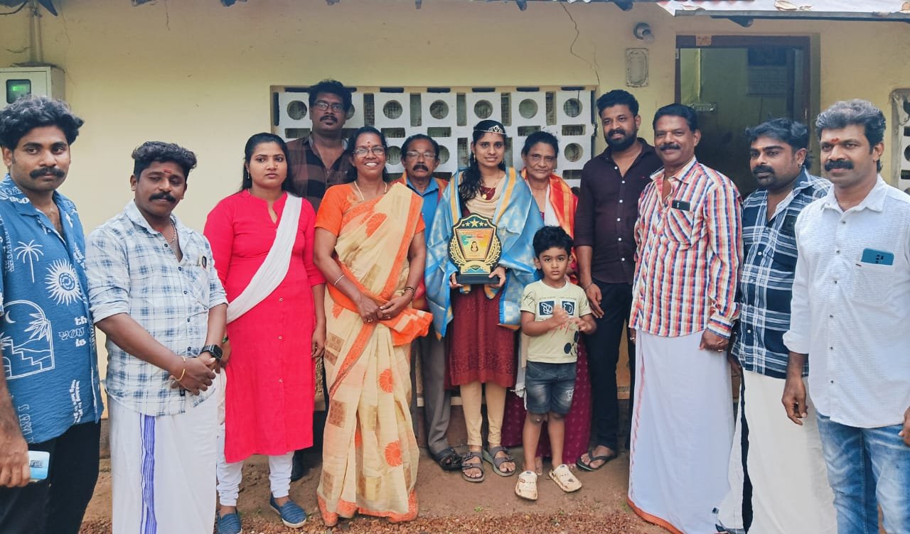 വക്കം.. കേരള സർവകലാശാലയിൽ നിന്നും ഹിന്ദി സാഹിത്യത്തിൽ ഡോക്ടറേറ്റ് നേടിയ നവമിഭദ്രനെ ( ഇളംബ ഹയർസെക്കൻഡറി സ്കൂൾ അധ്യാപികയാണ്)ആദരിച്ചു. വക്കം വാടയിൽ ഭദ്രന്റെയും സന്ധ്യയുടെയും മകളും അയിലം കടയിൽ വീട്ടിൽ റാംജിത്തിന്റെ ഭാര്യയും ആണ്.വാർഡ് മെമ്പർ സിന്ധു സുരേഷ്. രക്ഷാധികാരി. സുരേഷ്.ജി പ്രസിഡന്റ്. സജു. ഭാരവാഹികളായ മനു. ശ്രീകുട്ടൻ .ദിവ്യ.ജില്ലാ ഓർഗാനൈസർ വക്കം സുനു. എന്നിവർ വീട്ടിൽ എത്തി ആദരിച്ചു.