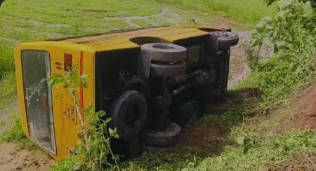 ബസ് കുട്ടികളുമായി വയലിലേക്ക് മറിഞ്ഞ