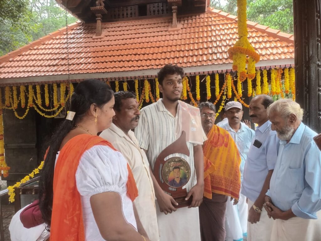 ക്ഷേത്ര പുനപ്രതിഷ്ഠാ ദിനതിലായിരിന്നു ചടങ്ങ് സംഘടിപ്പിച്ചത് ക്ഷേത്ര പ്രസിഡന്റ് മഹേഷശ്വരൻ നായർ ഉപഹാരം കൈമാറി, മറ്റ് ഭരണ സമിതി അംഗങ്ങളും നാട്ടുകാരും ചങ്ങിന് സാന്നിധ്യമേകി.