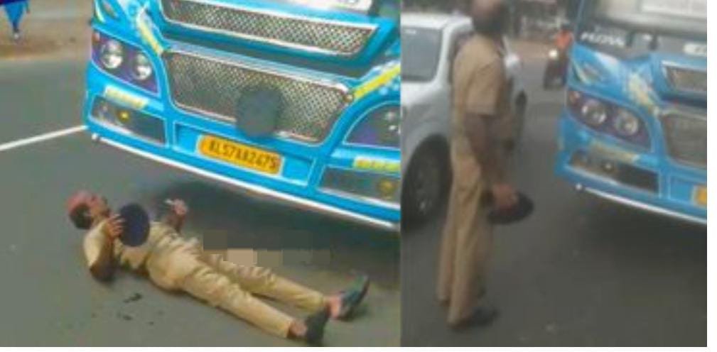 വിദ്യാർഥികളെ കയറ്റാതെ പോവാനൊരുങ്ങിയ സ്വകാര്യ ബസ് റോഡിൽ കിടന്ന് തടഞ്ഞ് ട്രാഫിക് ഡ്യൂട്ടിയിലുണ്ടായിരുന്ന ഹോം ഗാർഡ്