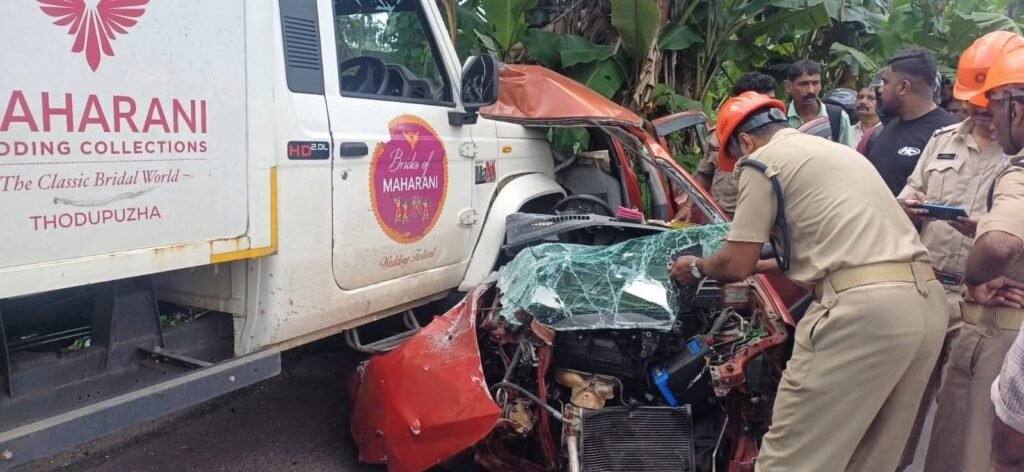 കോതമംഗലം : പുതുപ്പാടിക്ക് സമീപം നാലു വാഹനങ്ങൾ തമ്മിൽ കൂട്ടിയിടിച്ച് ഒരാൾ മരിച്ചു. മൂവാറ്റുപുഴയിൽ നിന്ന് കോതമംഗലം ഭാഗത്തേക്ക് പോകുകയായിരുന്ന നാഷണൽ പെർമിറ്റ് ലോറിയും കാറും എതിരെ വന്ന പിക്കപ്പുമായി കൂട്ടിയിടിക്കുകയായിരുന്നു. നിയന്ത്രണം വിട്ട വാഹനങ്ങൾ സമീപത്തു കൂടി പോകുകയായിരുന്നു കോതമംഗലം സ്വദേശി സഞ്ചരിച്ച സ്കൂട്ടറിലേക്കും ഇടിച്ചു കയറി. പൂപ്പാറയ്ക്ക് പോവുകയായിരുന്നു മാരുതി ആൾട്ടോ കാറും മഹാറാണി വെഡിങ് ഗ്രൂപ്പിന്റെ പിക്കപ്പും ആണ് അപകടത്തിൽപ്പെട്ടത് പൂപ്പാറ സ്വദേശികൾ സഞ്ചരിച്ച മാരുതി കാർ ലോറിയെ മറികടക്കാൻ ശ്രമിക്കുന്നതിനിടയിലാണ് അപകടം സംഭവിച്ചത് എന്നാണ് കരുതുന്നത്. അപകടത്തിൽ നിയന്ത്രണം വിട്ട ലോറി വട്ടം തിരിഞ്ഞ് സമീപത്ത് ഇറച്ചി കടയിൽ ഇടിച്ചാണ് നിന്നത്. പല്ലാരിമംഗലം മാവുടി സ്വദേശി ശിവൻ ( സ്വാദ് ഹോട്ടൽ ) നടത്തിവന്നിരുന്ന ഇറച്ചി കട പൂർണ്ണമായും തകർന്നു. കാറിൽ സഞ്ചരിച്ച പൂപ്പാറ സ്വദേശിയാണ് മരിച്ചത് എന്നാണ് അറിയുന്ന വിവരം. കാർ യാത്രികൻ തന്നെയായ മറ്റൊരാൾ കൂടി മരിച്ചു എന്ന് സ്ഥിരീകരിക്കാത്ത വിവരമുണ്ട്. ഒരാൾ അതീവ ഗുരുതരാവസ്ഥയിൽ ചികിത്സയിലാണ്. കോതമംഗലം സ്വദേശിയായ സ്കൂട്ടർ യാത്രക്കാരനും പരിക്കുണ്ട്. അപകടത്തിൽ മാരുതി ഓൾട്ടോ കാർ പൂർണമായും തകർന്നു.