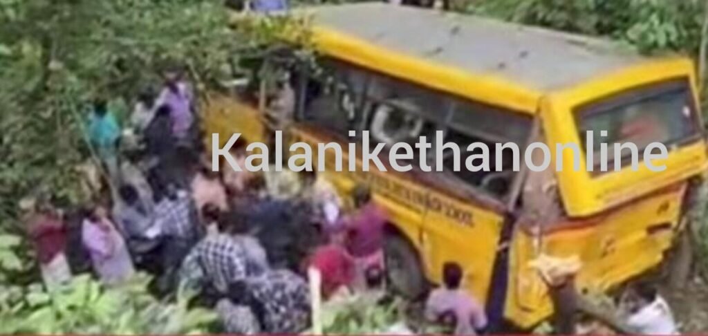 നിലമേൽ സ്കൂൾ ബസ് അപകടത്തിൽ പെട്ടു. കിളിമാനൂർ പാപ്പാലയിൽ പ്രവർത്തിക്കുന്ന വിദ്യാജ്യോതി എന്ന സ്വകാര്യ സ്കൂളിന്റെ