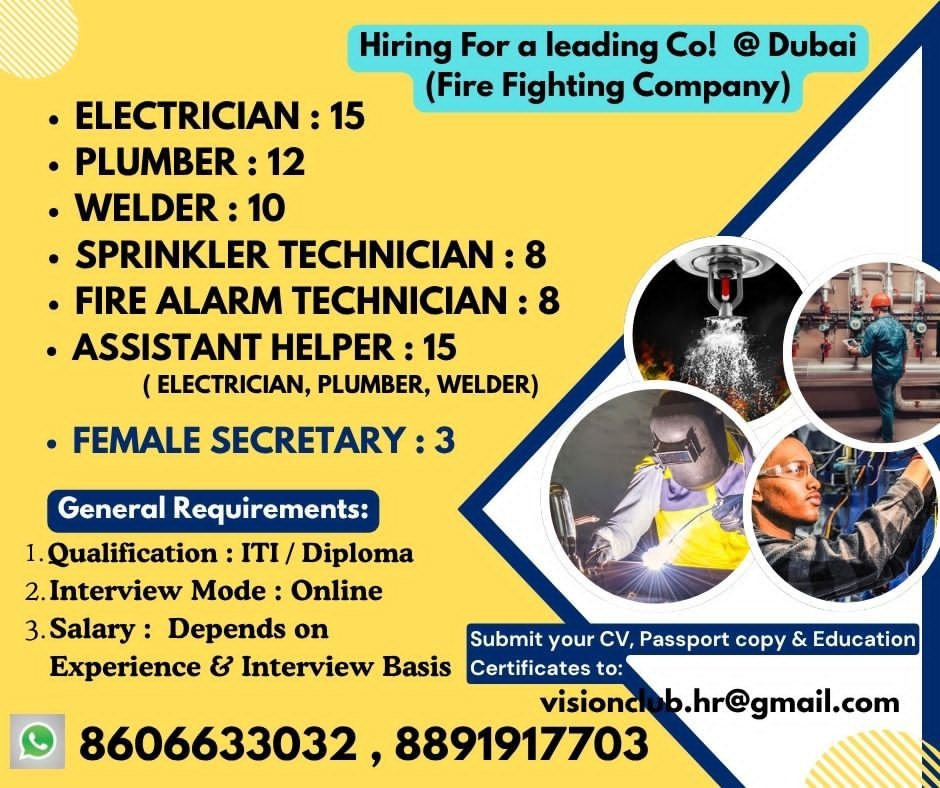 Dubai ൽ പ്രവർത്തിക്കുന്ന കമ്പനിയിലേക്കു നിരവധി അവസരം