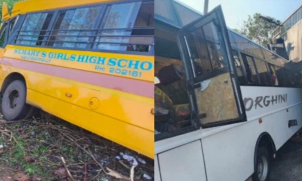 കോട്ടയം: സ്കൂള് ബസിന് പിന്നില് തീര്ത്ഥാടകരുടെ വാഹനം ഇടിച്ച് അപകടം. പാലാ പൊന്കുന്നം റോഡില് ഒന്നാം മൈലിലാണ് സംഭവം. അപകടത്തില് മൂന്ന് വിദ്യാര്ത്ഥികള് ഉള്പ്പെടെ പത്ത് പേര്ക്ക് പരിക്കേറ്റു. നിസാരമായി പരിക്കേറ്റ ഇവരെ കാഞ്ഞിരപ്പള്ളി ഗവ. ആശുപത്രിയില് പ്രവേശിപ്പിച്ചു.രാവിലെ എട്ട് മണിയോടെയായിരുന്നു അപകടം നടന്നത്. കാഞ്ഞിരപ്പള്ളി സെന്റ് മേരീസ് സ്കൂള് ബസാണ് അപകടത്തില്പെട്ടത്. കര്ണാടക സ്വദേശികളായ തീര്ത്ഥാടകര് സഞ്ചരിച്ച വാഹനം സ്കൂള് ബസിന് പിന്നില് ഇടിക്കുകയായിരുന്നു.