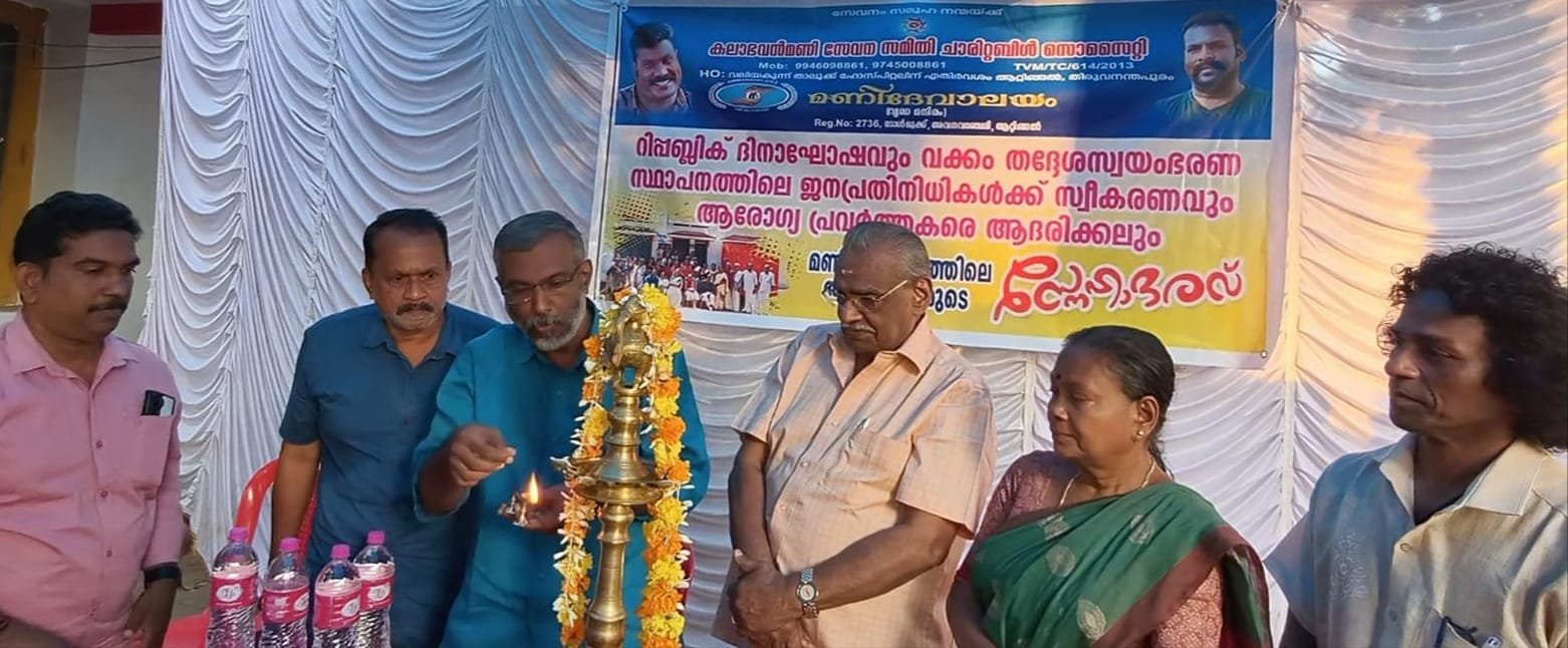 കലാഭവൻ മണിസേവന സമിതിയുടെ ആഭിമുഖ്യത്തിൽ വക്കം മണിദേവാലയത്തിൽ ജനപ്രതിനിധികളെയും ആരോഗ്യ പ്രവർത്തകരെയും ആദരിച്ചു.കവിയും ഗാനരചയിതാവുമായ രാധാകൃഷ്ണൻ കുന്നുംപുറം ചടങ്ങ് ഉദ്ഘാടനം ചെയ്തു.