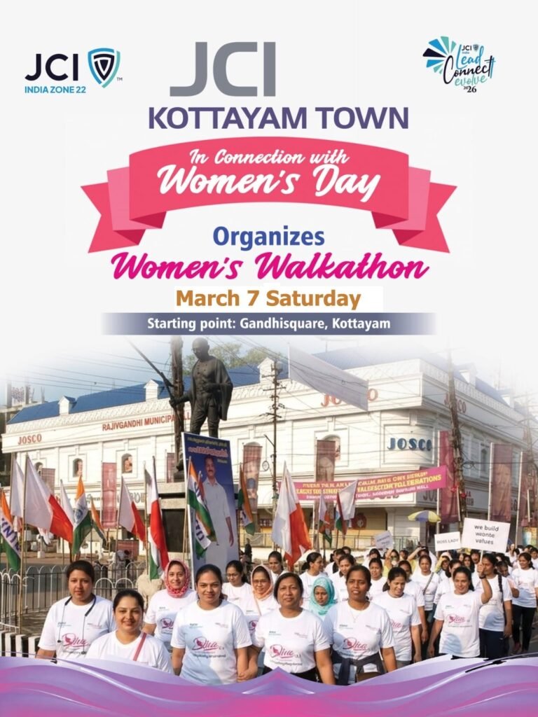 വനിതാ ദിനാഘോഷം: ജെസിഐ കോട്ടയം ടൗൺ വാക്കത്തോൺ സംഘടിപ്പിക്കുന്നു