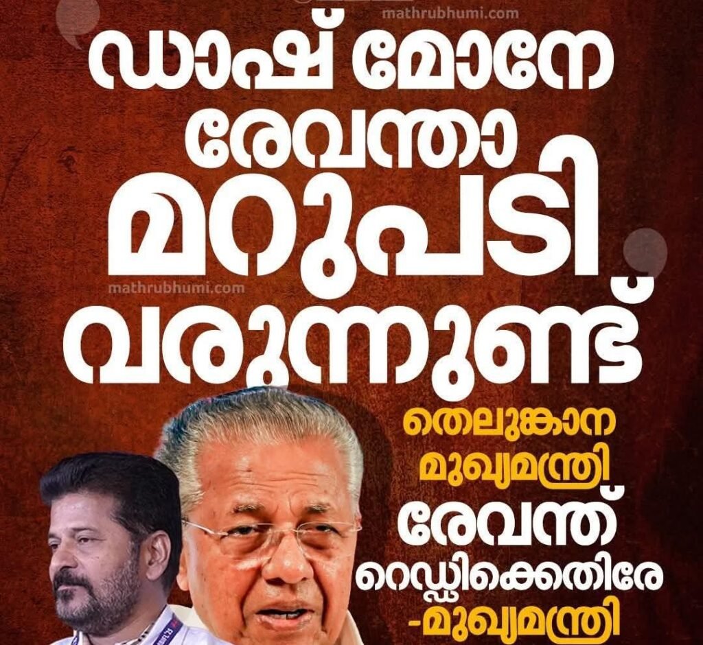 ഡാഷ് മോനേ രേവന്താ മറുപടി വരുന്നുണ്ട്; രേവന്ത് റെഡ്ഡിക്ക് മോശം ഭാഷയുമായി പിണറായിയുടെ മറുപടി